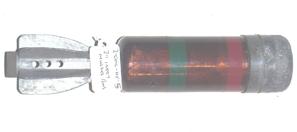 Inert WW2 HE bomb dated 12/43 on fin, fuses marked 'dummy' as these were used as practive rounds, all contents of fuse removed (see photo). Repainted in correct colours. Cap recovered from disused WW2 firing range so has pitting and a little damage (see photo) Round has been used fro practive and has a small dent to top of fuse.