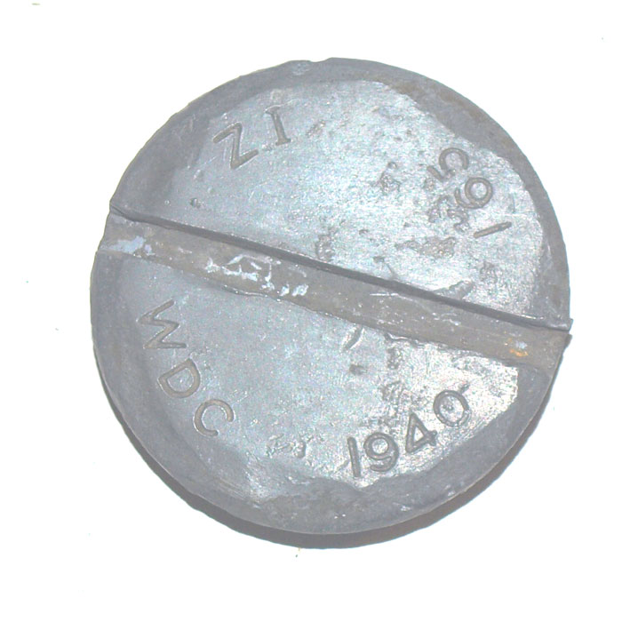 Inert WW2 3" Mortar Drill Bomb MkIII. Comes with 1940 dated Plug. Repainted and marked in correct colours, empty and inert. Has shaped ring welded to fins for use with APL (Apperatus Practicing Loading).