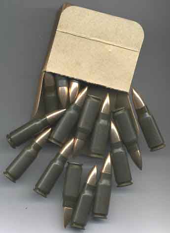 7.92 Patrone 'Kurz' inert ammunition for the STg43, MP43 and MP44, a very rare round, post war manufacture, 15 rounds boxed,also available in quantities of 3 minimum; see related items belowFree from explosive, no licence required