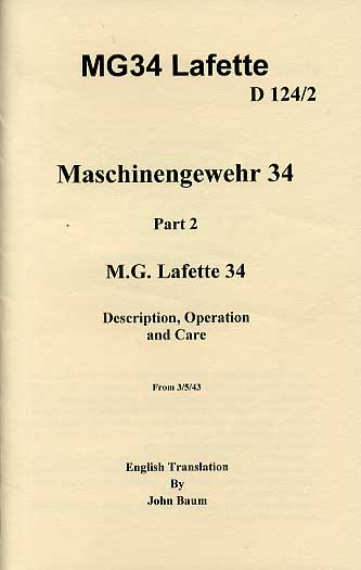Reprint of the original but translated into English. 44 pp, approx A5 size complete with all illustrations. This manual was intended for MG34 crew and thus details the day to day operation of the weapon mounting. the information is identical for the MG42 so the manual is still applicable even if the mounting is being used with the MG42