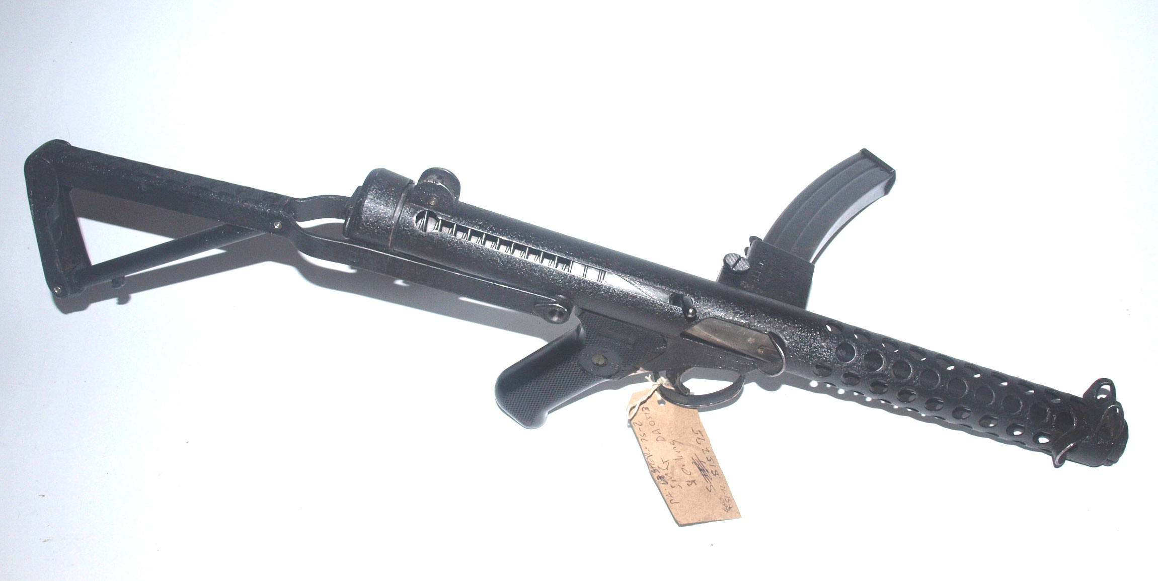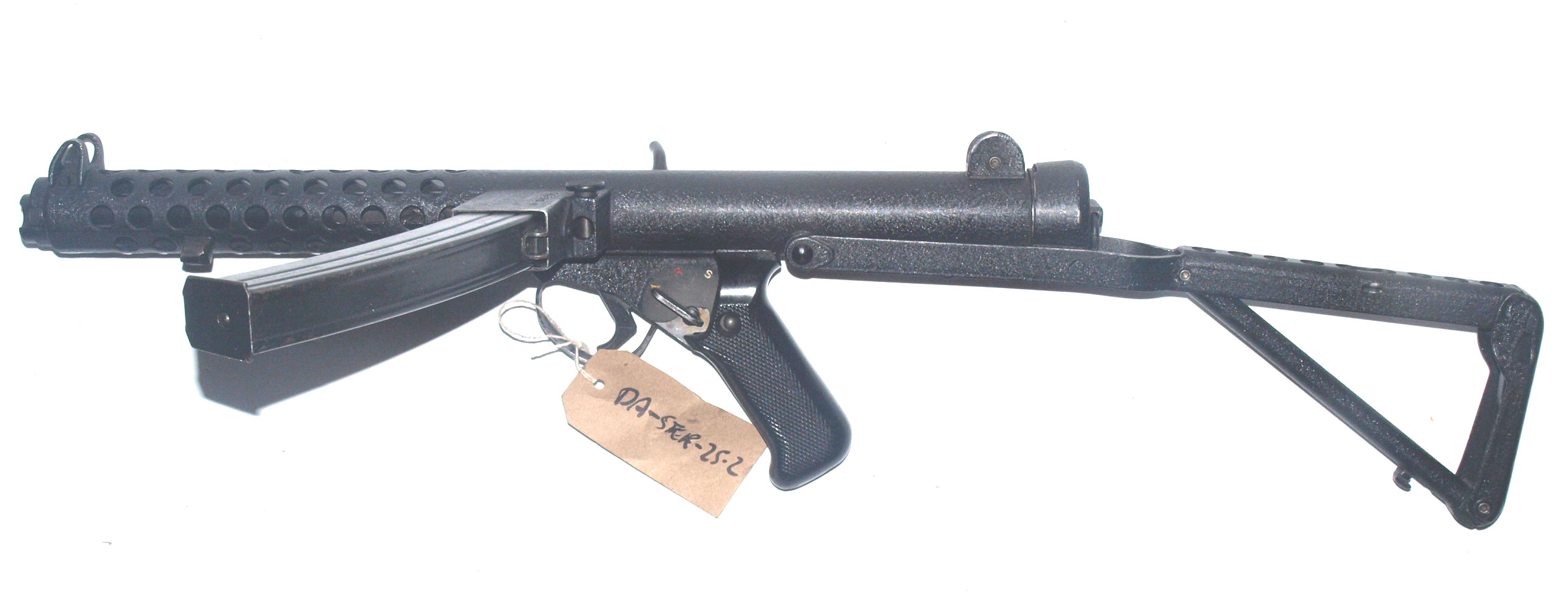 Deactivated Sterling L2A3 SMG, Crackle finish type. Moving rear bolt half (same as 1995 spec) Folding stock, removable magazine, Moving trigger and working fire selector, overall VGC with scarce British Army issue magazine, black crackle finish is near new and near 100% Complete. A previous deactivator had removed the forward bolt spring but this does not affect the action, partial field strip (rear cover spring and rear piston) . The EU Spec for most SMG's is virtually the same as the 1995 and 2010 spec, in this case the the only differences being that it cannot be fully stripped and there is a dot of weld in the mag well corresponding to a small cut out on the magazine. Includes original MoD User handbook in near new condition.