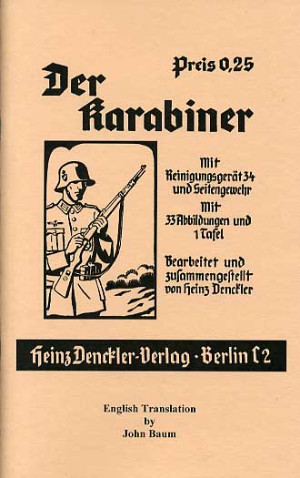 Reprint of the original but translated into English. 43 pp approx A5 size complete with all illustrations. This manual covers the standard German bolt action K98a, 98b G98 Carbine (K98AZ) rifle in 7.92mm and was intended for users and thus details the day to day operation of the weapon.Lots of diagrams and illustrations.