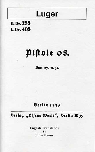 Reprint of the original but translated into English. 32 pp, approx A5 size complete with all drawings and illustrations. This manual was intended for those equipped with the Luger Pistol. Contains full useage and stripping instructions along with parts identification lists