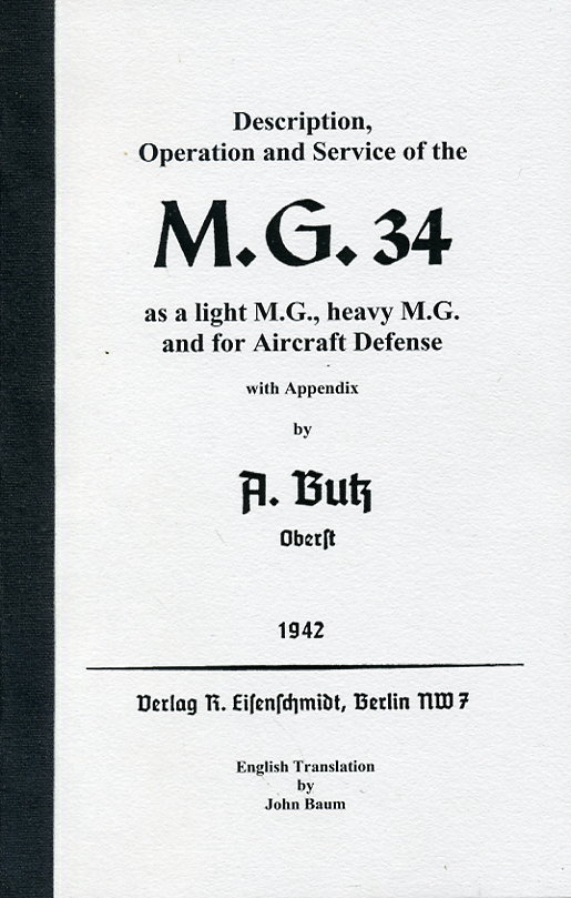 Reprint of the original but translated into English. 212 pp, approx A5 size complete with all drawings and illustrations. This manual is a comprehensive guide to the MG34 but does not replace other MG34 manuals such as the Biltdtafeln. It is a thick volume and good value for money if you have an interest in the MG34.