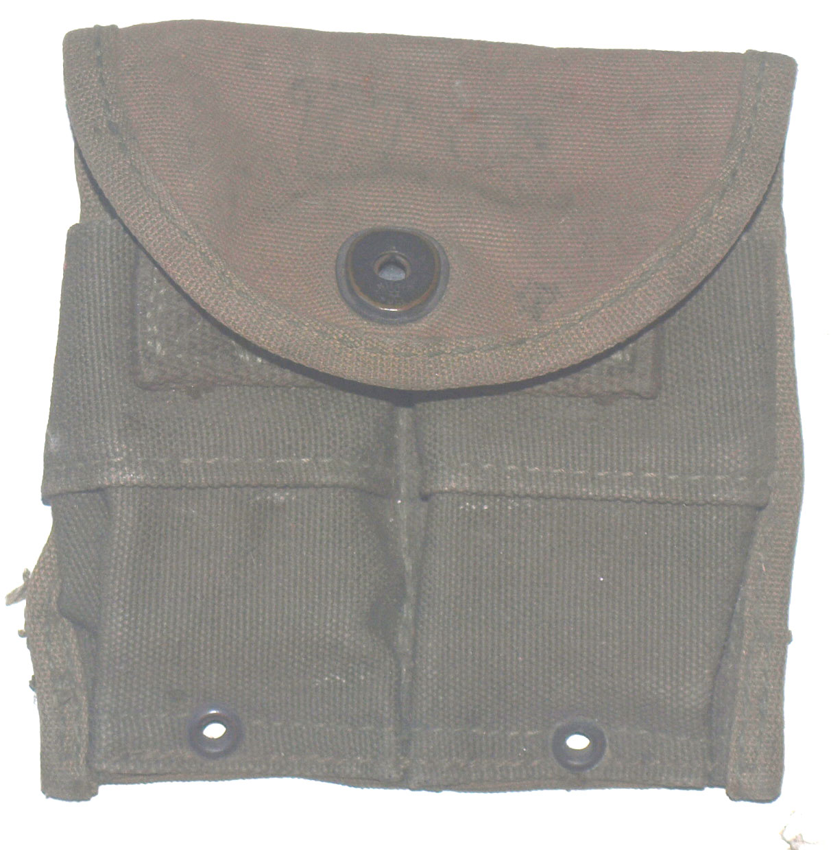 1944 dated M1 carbine double magazine pouch. Genuine item in good used condition, small black mark to rear top of pouch, shouldn't be visible when fitted to belt.