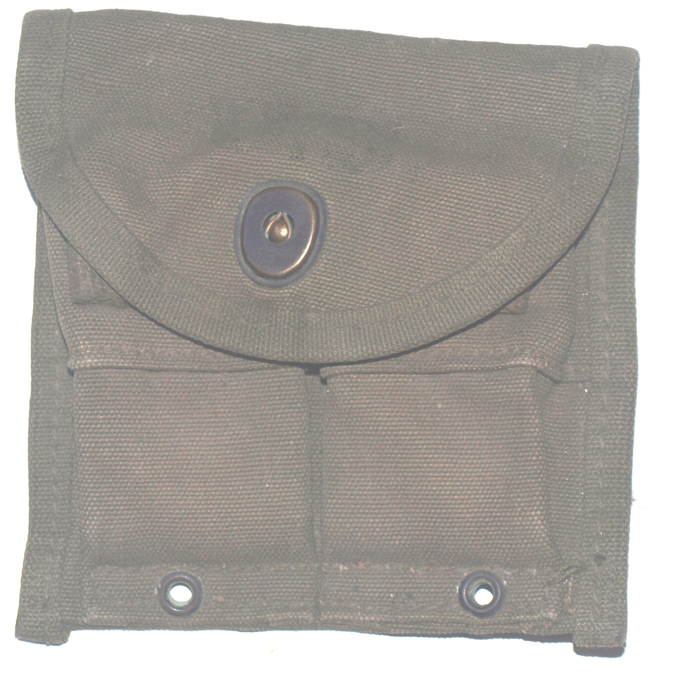 1951 dated M1 carbine double magazine pouch. Genuine item in good used condition, small black mark to rear top of pouch, shouldn't be visible when fitted to belt.