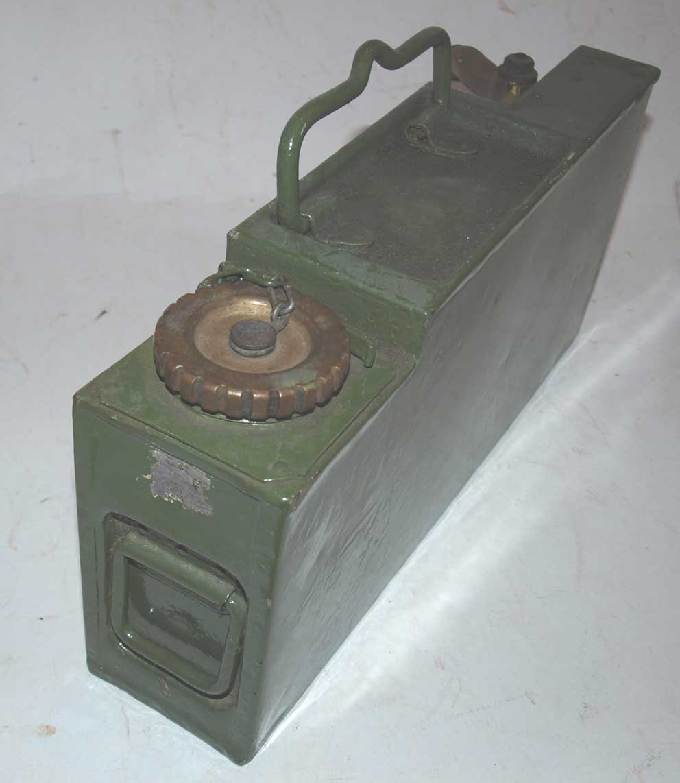 These water cans are fairly hard to get hold of, we picked this up on our last trip to Belgium. In very good condition, would benefit from a repaint though. Retains chain and clip for lid, which are so often broken/missing. Hose connector turns easily. Weimar German Republic stamp to end of can, although I think this is a WW1 can to which the stamp has been applied after WW1 as there is slight dent where the stamp has been punched.